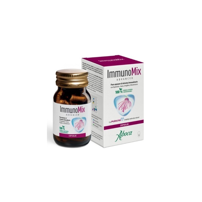 ImmunoMix Advanced cápsulas apoya el sistema inmunitario gracias a la presencia de Equinácea, Saúco, Jengibre y Eleuterococo, no solo durante el período invernal, sino en todos los casos en los que este se encuentra debilitado.