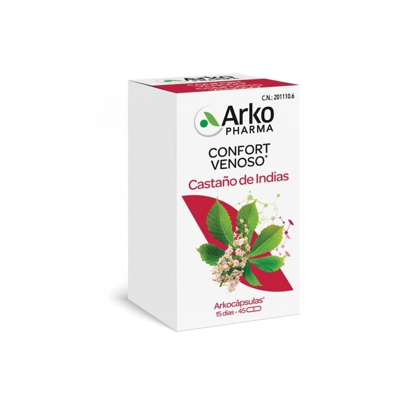 Arkocápsulas® Castaño de Indias es un complemento alimenticio formulado con principios activos 100% vegetales para ayudar a mantener el confort circulatorio y mejorar la microcirculación. Se utiliza principalmente para aliviar las molestias relacionadas con la circulación venosa y puede ser beneficioso para quienes sufren de piernas cansadas o pesadas.