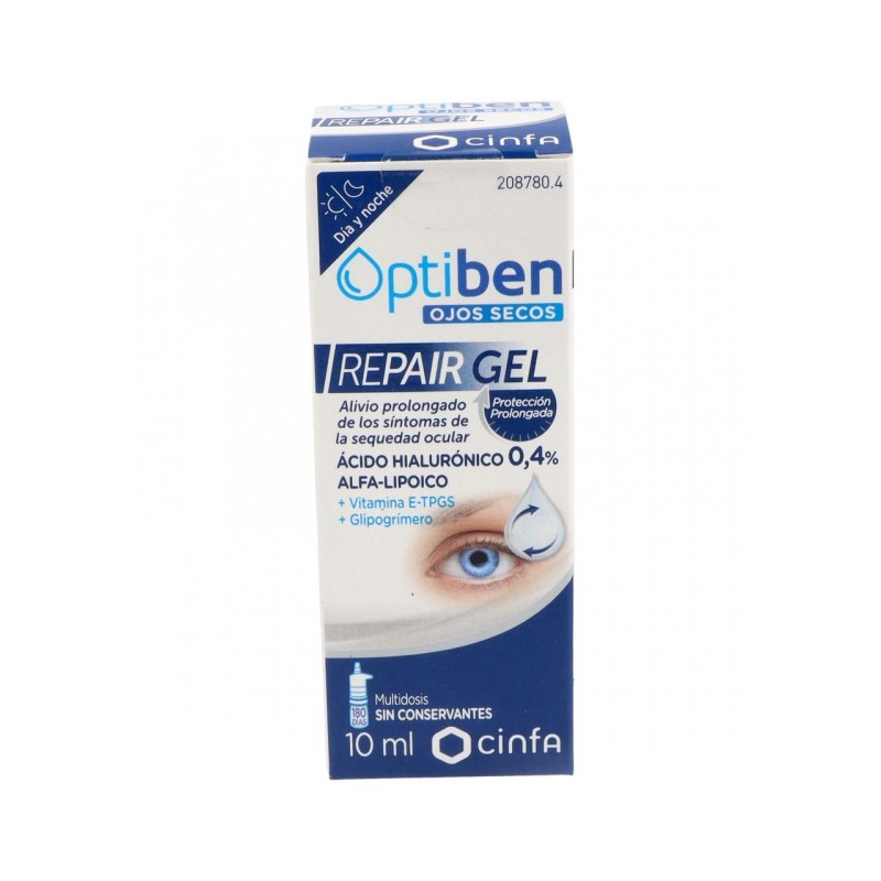 Descripción: Optiben Repair Gel es un gel oftálmico diseñado para proporcionar alivio a la sequedad ocular. Su fórmula reparadora y protectora está especialmente diseñada para ofrecer un alivio prolongado. Este envase multidosis tiene una duración aproximada de 180 días y es adecuado para su uso incluso con lentes de contacto.