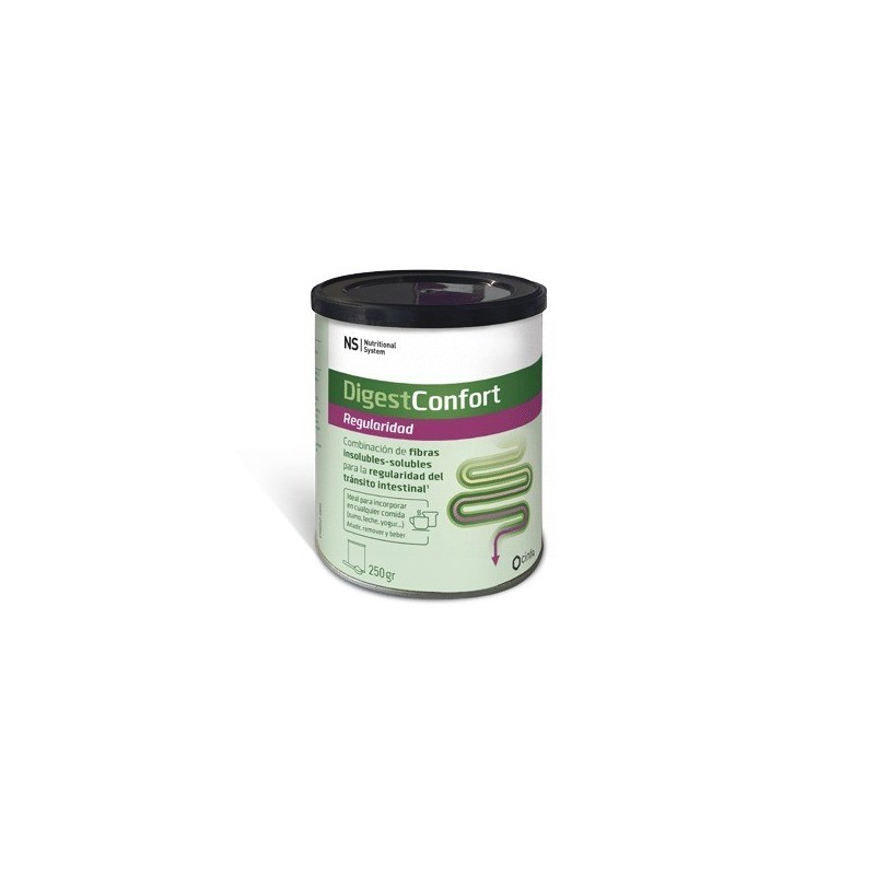 DIGESTCONFORT NS Regularidad COMBINACIÓN DE FIBRAS INSOLUBLES Y SOLUBLES PARA LA REGULARIDAD DEL TRÁNSITO INTESTINAL (3) Balance adecuado de fibras insolubles-solubles (3:1) que sigue la recomendación de las sociedades científicas. Presentación: Envase de 250 g